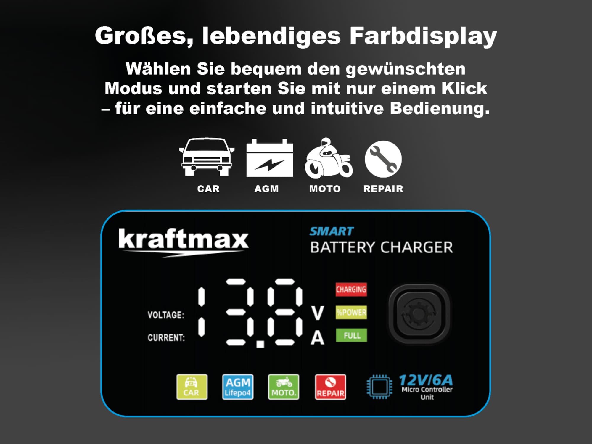 - vielseitiges und intelligentes Ladegerät